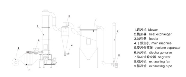 潔凈的熱風(fēng)經(jīng)閥板分配進(jìn)入床體內(nèi),從加料器進(jìn)入的濕物料被熱風(fēng)形成沸騰狀態(tài)。由于熱風(fēng)與物料廣泛接觸,增強(qiáng)了傳熱傳質(zhì)的過程,因此在較短時(shí)間內(nèi)就可干燥。從床體的一端進(jìn)入,經(jīng)過幾十秒至幾分鐘的沸騰干燥,自動(dòng)從床體另一端流出。本設(shè)備一般進(jìn)行負(fù)壓操作。