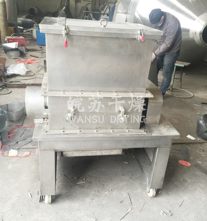 物料由進(jìn)料斗送進(jìn)粉碎室,經(jīng)刀刃和刀座的沖擊,旋轉(zhuǎn)刀和固定刀同時剪切粉碎,由于受到旋轉(zhuǎn)離心力的作用,物料自動從出口處 流出。