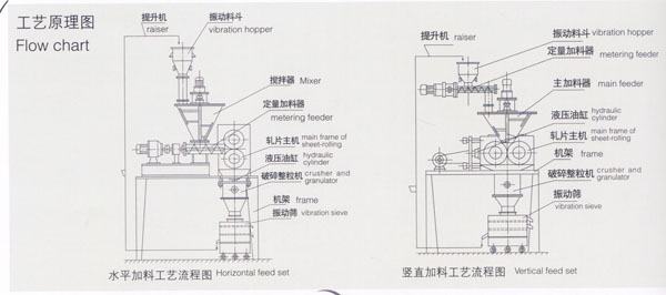 除了擠壓磨擦可引起爆炸的危險(xiǎn)品外,本機(jī)組對大部分干粉物料都可以直接制粒。通過旋轉(zhuǎn)接頭對軋輥進(jìn)行水冷,本機(jī)組亦可對熱敏性物料進(jìn)行制粒。
