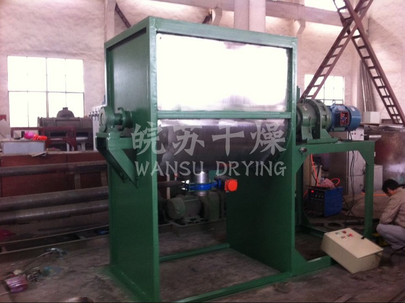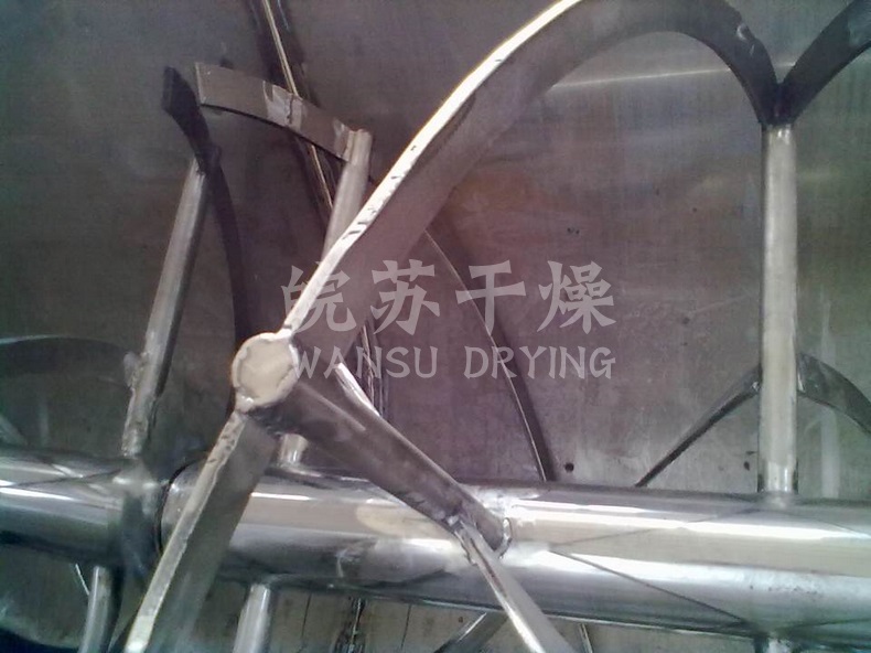 該機(jī)型由容器、螺旋攪拌葉片和傳動(dòng)部件組成:螺旋葉片一般做成雙層或三層,外層螺旋將物料從兩側(cè)向中央?yún)R集,內(nèi)層螺旋將物料從中央兩側(cè)輸送,形成對(duì)流混合。