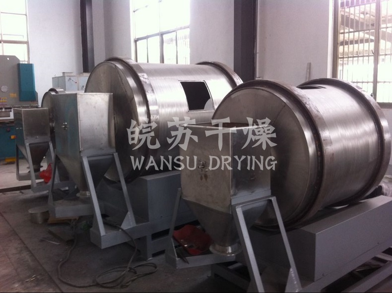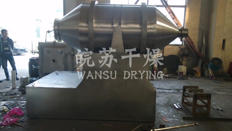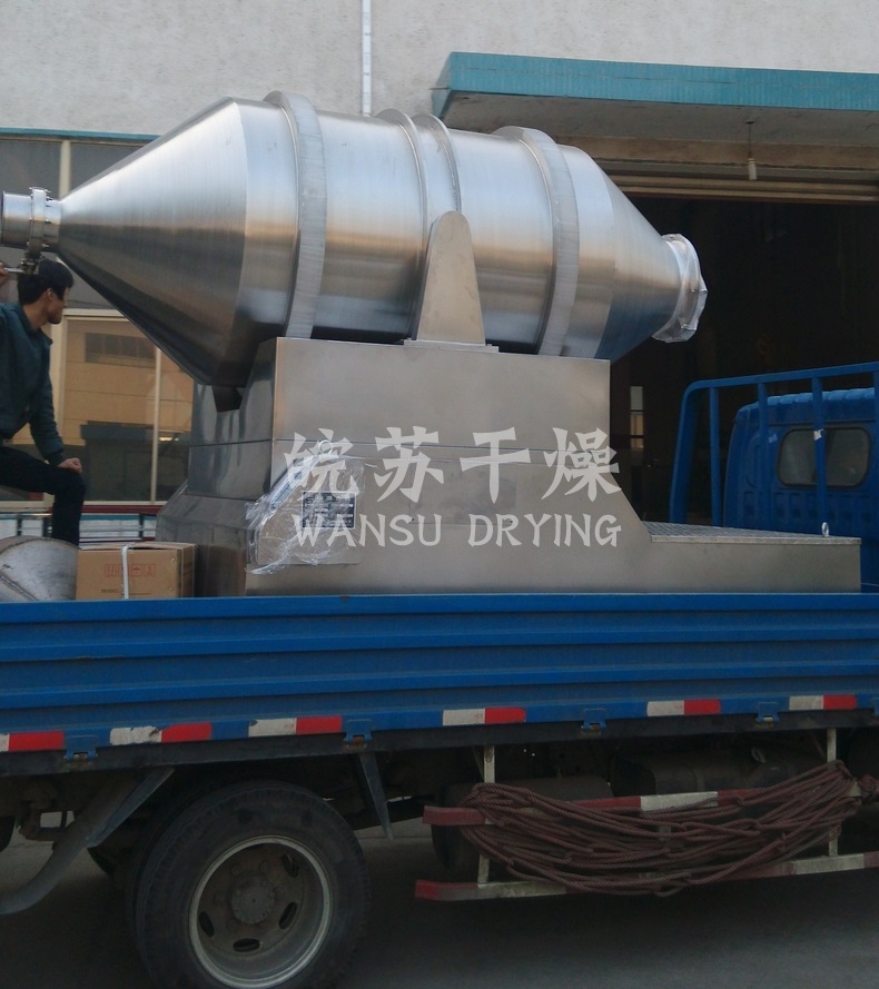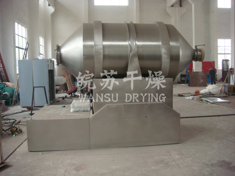 EYH二維混料機(jī)的轉(zhuǎn)筒可同時進(jìn)行二個運動,一個為轉(zhuǎn)筒的轉(zhuǎn)動,另一個為轉(zhuǎn)筒隨擺動架的擺動。被混合物料在轉(zhuǎn)筒內(nèi)隨轉(zhuǎn)筒轉(zhuǎn)動、翻轉(zhuǎn)、混合的同時,又隨轉(zhuǎn)筒的擺動而發(fā)生左右來回的摻混運動,在這兩個運動的共同作用下,物料在短時間內(nèi)得到充分的混合。EYH二維混料機(jī)適合所有粉、粒狀物料的混合。